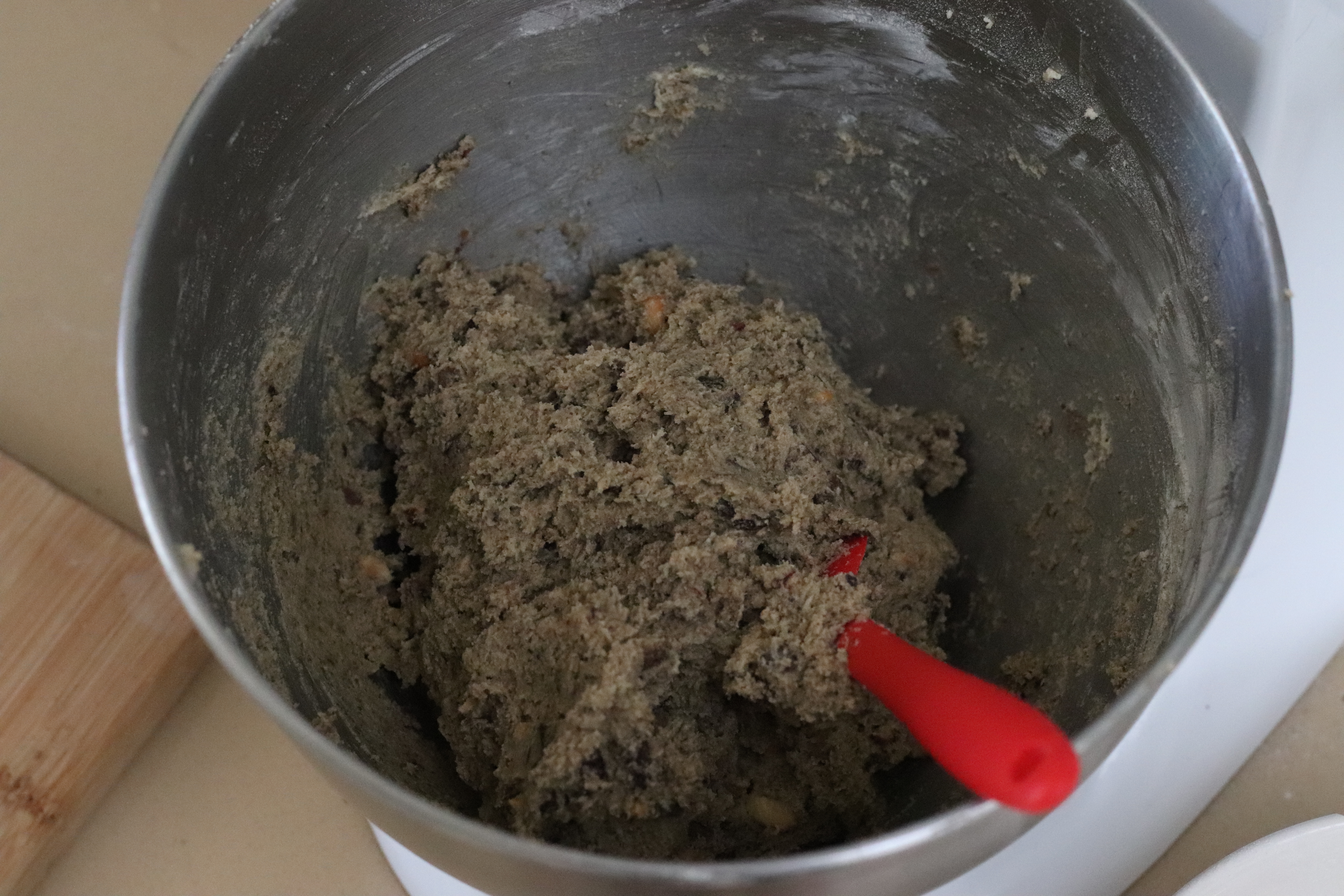 Mix until it just forms a thick dough