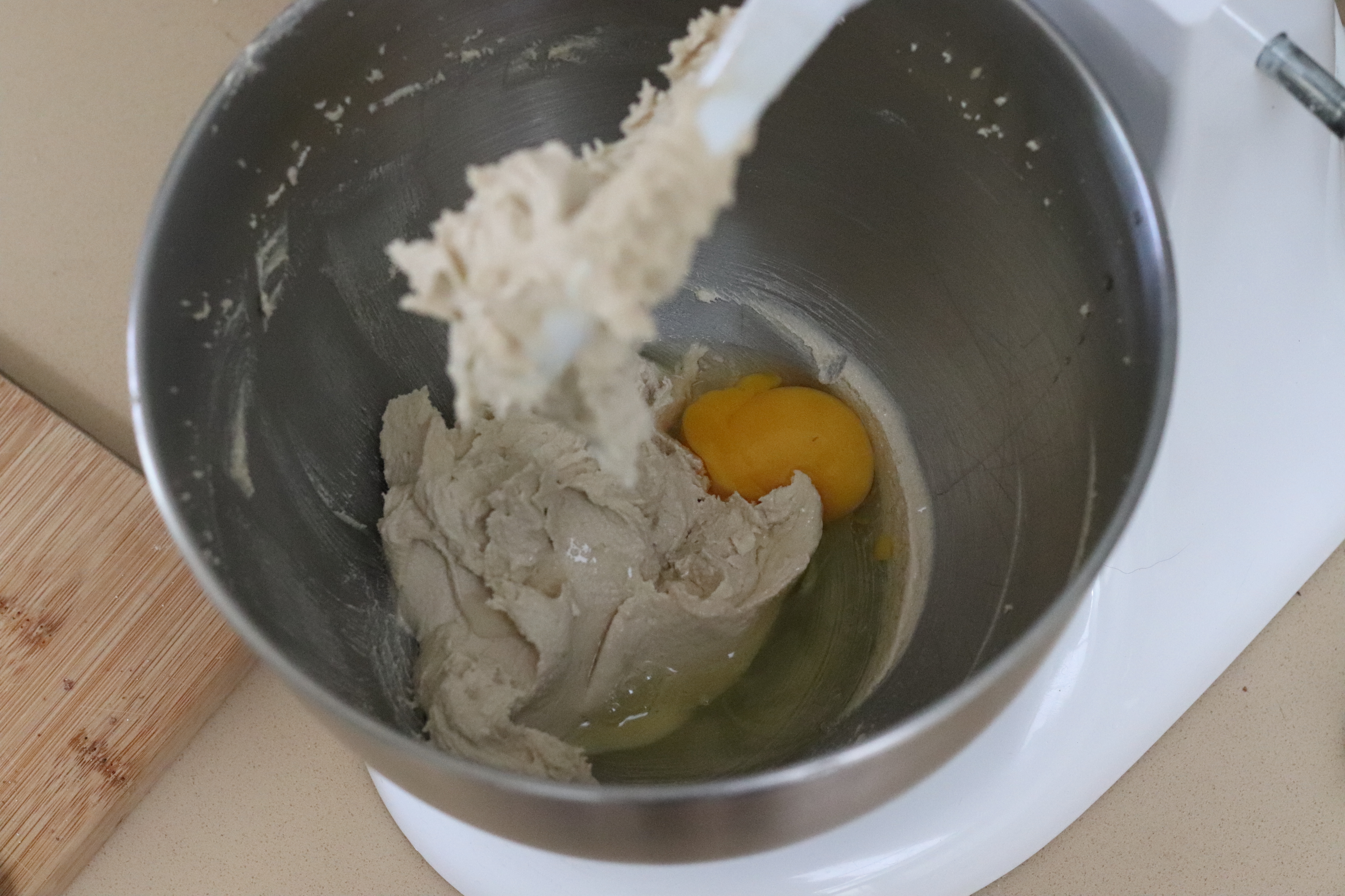 Beat until egg is mixed in and add the dry ingredients